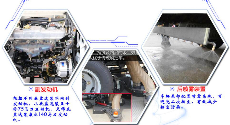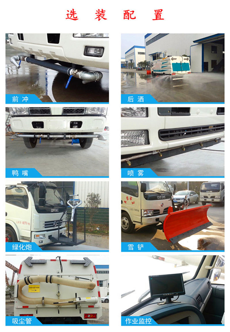 12. 車廂尾部帶可調(diào)節(jié)的霧狀噴水桿,在節(jié)約水的同時(shí)消除二次污染及美化路面的效果。