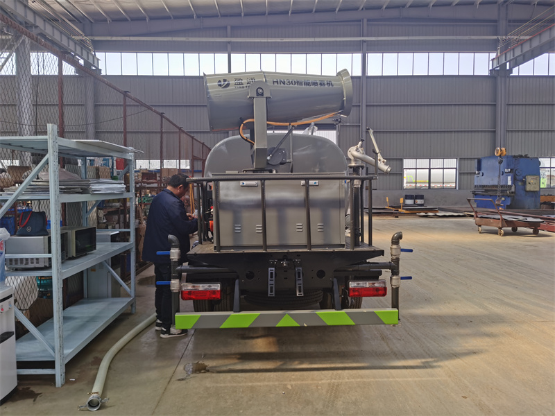 東風(fēng)藍(lán)牌灑水車配置:采用東風(fēng)灑水車原廠底盤,罐體有效容積5立方,藍(lán)牌,700R16鋼絲胎,萬里揚(yáng)5擋變速箱,原廠空調(diào),ABS,氣動(dòng)剎車,多功能方向盤,配全柴115匹馬力國(guó)六發(fā)動(dòng)機(jī),配30型號(hào)霧炮,配8千瓦發(fā)電機(jī)組,霧炮可以遙控操作