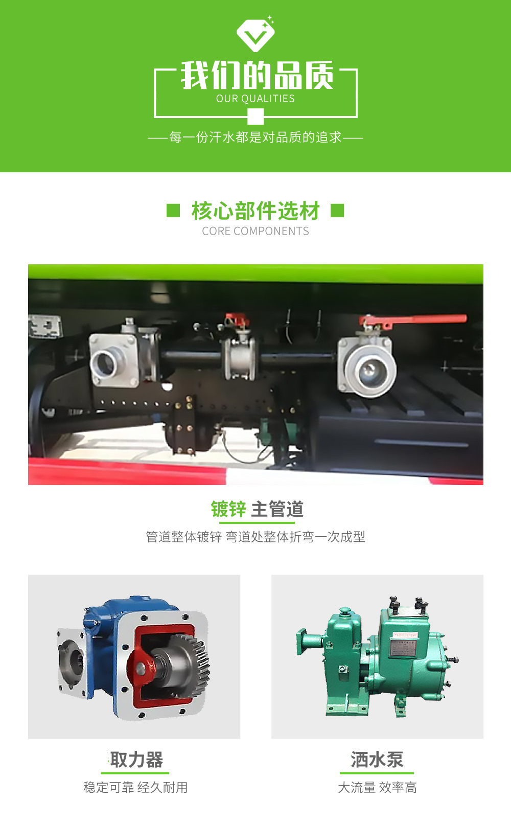 灑水車 產品主要技術資料 產品名稱: 灑水車 外型尺寸(mm): 8660,8360×2500×3200(mm) 底盤型號: DFH1180EX8 貨廂尺寸(mm): ××(mm) 總 質 量 :(kg) 18000(Kg) 接近/離去角(° ) 17/15,17/15,17/14,17/14,17/16,17/18(°) 額定質量:(kg) 10920,10855(Kg) 前懸/后懸(mm): 1400/2560,1430/2530,1430/2730,1430/2730,1430/2230,1430/1930(mm) 整備質量:(kg) 6950(Kg) 最高車速(km/h): 89(km/h) 排放標準: 國六 底盤參數 底盤型號: DFH1180EX8 軸荷: 6500/11500 軸 數: 2 燃油種類: 柴油 軸 距(mm): 3800,3950,4200,4500,4700,5000,5300,5800,5600(mm) 前 輪 距(mm): 1876,1896,1920,1950,1914,1934,1980,2000,1815(mm) 駕駛室乘人數: 2,3(人) 后 輪 距(mm): 1820,1860,1800(mm) 輪 胎 數: 6(個) 彈簧片數: 7/9+6,8/10+8,8/9+6,11/10+8 輪胎規格: 10.00R20 18PR,275/80R22.5 18PR 整車說明: 1.該車主要裝置為罐體,灑水泵,主要用于灑水;2.罐體有效容積:11.40立方米,罐體外形尺寸(長×長軸×短軸)關系為(mm): 5200×2300×1380;整車長度/前懸/軸距/后懸的對應關系為(mm):8660/1400/4700/2560,8660/1430/4700/2530,8660/1430/4500/2730,8360/1430/4200/2730,8660/1430/5000/2230,8660/1430/5300/1930,3、防護材料:Q235A碳鋼,連接方式:左右側面與后下部防護勻采用螺栓連接,后部防護斷面尺寸(mm):120×40,,后部防護離地高度(mm):490.4、ABS型號/生產廠家:3631010-C2000/東科克諾爾商用車制動系統(十堰)有限公司,ABS 8/東科克諾爾商用車制動系統(十堰)有限公司, 4460046450/威伯科汽車控制系統(中國)有限公司.隨底盤選裝駕駛室。 發動機參數 發動機型號 發動機生產企業 排量(ml) 功率(kw) DDi50E190-60