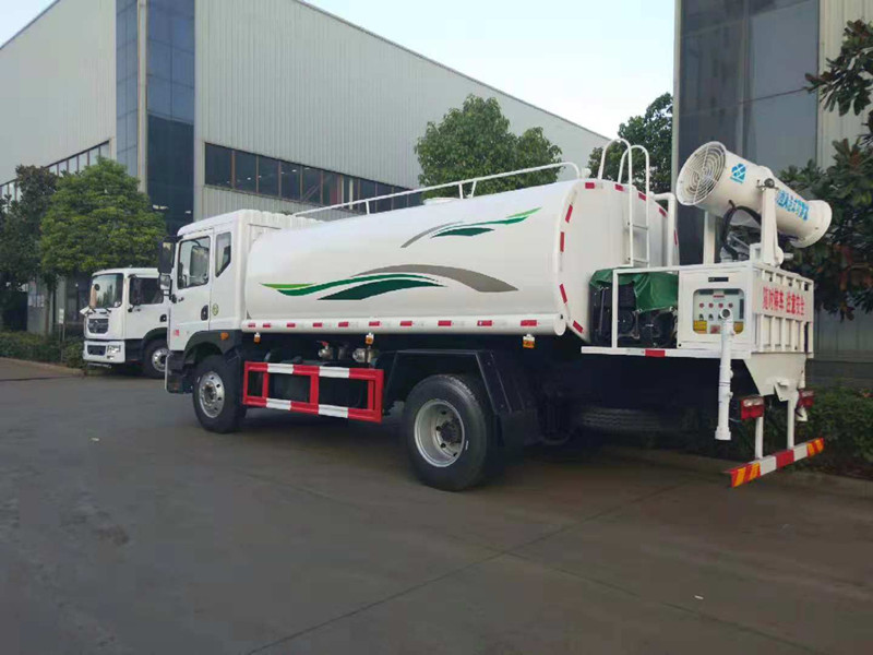 灑水車隨底盤選裝駕駛室;選裝側噴及農藥炮;品名:水;密度:1000千克/立方米;有效容積:15.6立方米;罐體外形尺寸(長×長軸×短軸)(mm):6600×2300×1500;ABS吸程≧7米,灑水寬度≧14-16米,射程≧25-30米,引水時間<5min,流量60m3/h。前沖(噴)、后灑、帶側噴(花灑)、帶后工作平臺、平臺上安裝綠化灑水高炮(炮噴射形狀可調節:直沖、大雨、中雨、毛毛雨、霧狀、可連續調節,360°旋轉),配消防接口,自流閥,濾網,帶自吸自排功能。配備大功率專用灑水泵,泵可自吸自排,安裝過濾網,帶消防接口,可通過消防栓進水,帶自流閥,隨車選裝20米綠化卷盤,可噴灑農藥,罐體金屬漆。罐體有橢圓和方圓罐兩種,可根據用戶的要求定做。