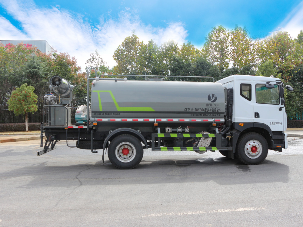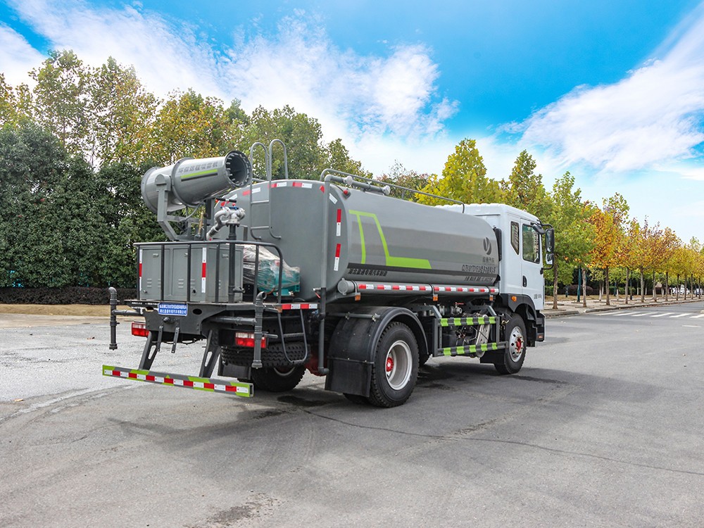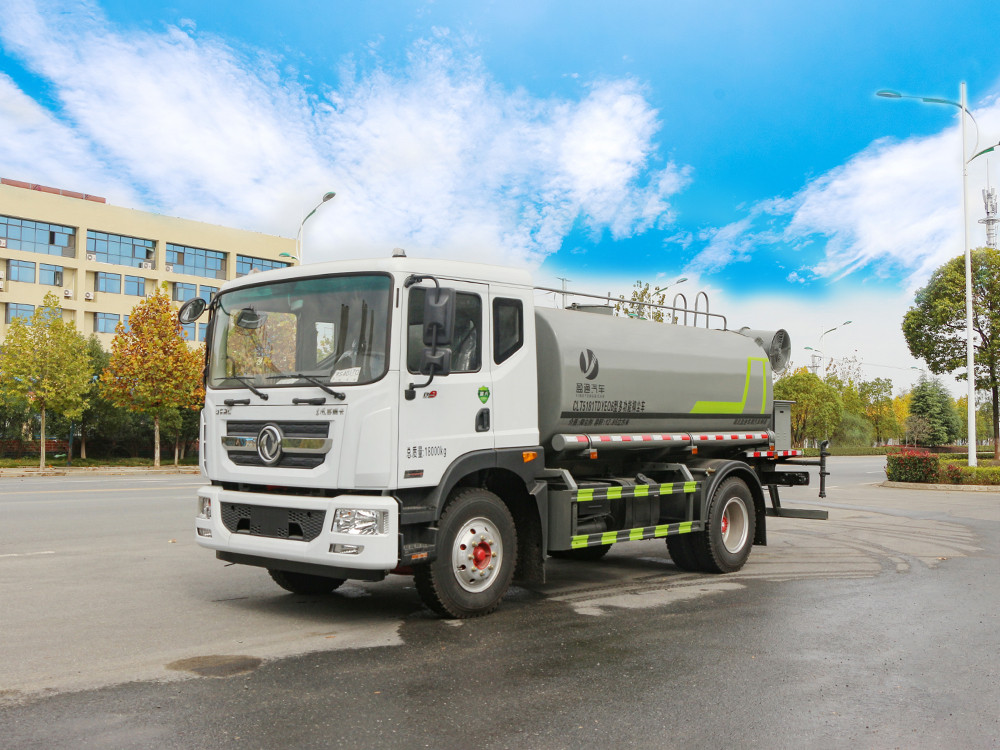 東風灑水車產品標配前噴(鴨嘴)、后沖、后灑、側噴、后置式工作 平臺,平臺上配置綠化水炮(可 360°旋轉,既可以調成柱狀,也可 以調成霧狀,更可以調成直沖狀、大雨、中雨、小雨、毛毛雨),配 備優質大功率專用灑水泵(可自吸自排,可從河里或池塘抽水到罐體), 取力器,雜物過濾網,消防接口,自流球閥系統、取力器、球閥、濾網 均為國家標準產品,主管道加粗,法蘭墊、法蘭盤加厚,大通徑球閥。 整體具備性能優良安全可靠、效率高、流量大、維修方便等特點