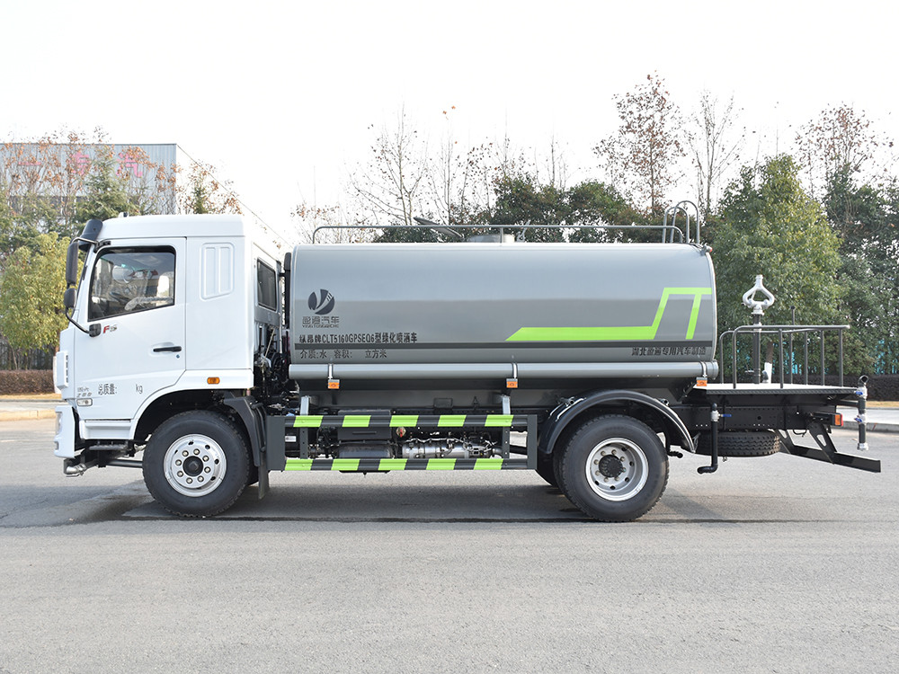 12方灑水車價格多少-灑水車配置: 1、罐體約為 12 方, 2、邊燈帶電,罐體尾部上方標配 2 個紅色示寬燈, 3、標配前噴為鴨嘴直沖,標配后沖,用戶可根據自己的需求,來調 整對沖位置。 4、沖孔平臺(承載能力加強),炮筒后蓋為定制型螺栓卡扣, 5、前噴、后沖、后灑、側噴,綠化高炮開關球閥均采用工程專用 50 大通徑銅球閥, 6、新式軸承式水炮,更加耐用, 7、60-90 型水泵, 8、防腐法蘭墊片, 9、鋁制后灑,不易炸開 10、罐體自動焊(美國林肯焊機及電源),拼板自動焊接,封頭環 縫焊接,無氣孔,焊縫美觀。