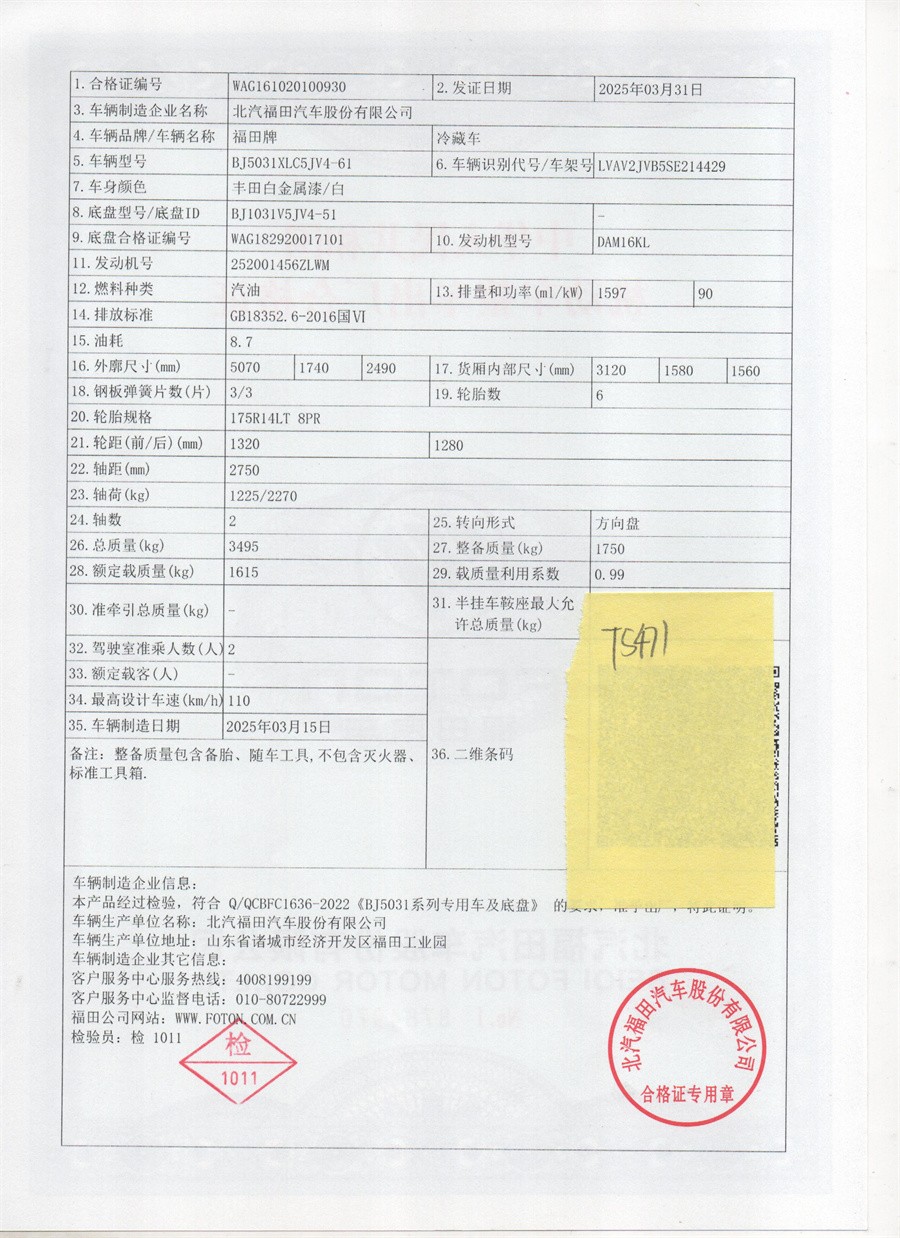 廂體采用內(nèi)外玻璃鋼板材制作,中間填充8cm 厚高密度保溫材料,底板選用加厚型防滑花紋鋁板,鋁合金型材包邊,不銹鋼門鎖件,后雙開門,帶單側開門,匹配零下15度制冷機組。其余按冷藏車標配制作。提供機動車上戶手續(xù)(機動車合格證、上戶發(fā)票、車輛保修手冊、隨車工具)。