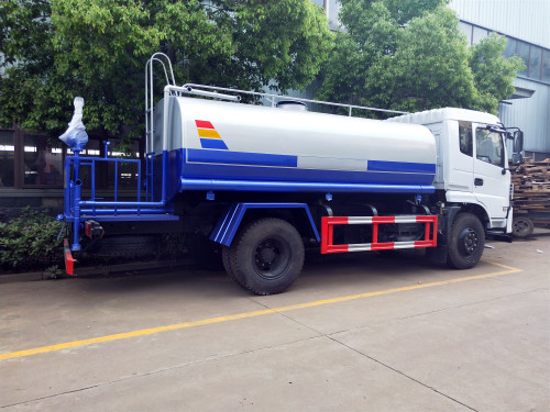 3.檢查連接件是否松動,吸水軟管是否斷裂、漏氣和堵塞。灑水車廠家前噴后灑,前裝有鴨形噴嘴或圓頭沖嘴,后面裝有圓柱開灑水噴嘴或蓮蓬頭噴嘴,后部有一工作平臺,裝配有高壓水炮。后部還可裝8個噴嘴(選裝)噴水器一般用于沖洗街道