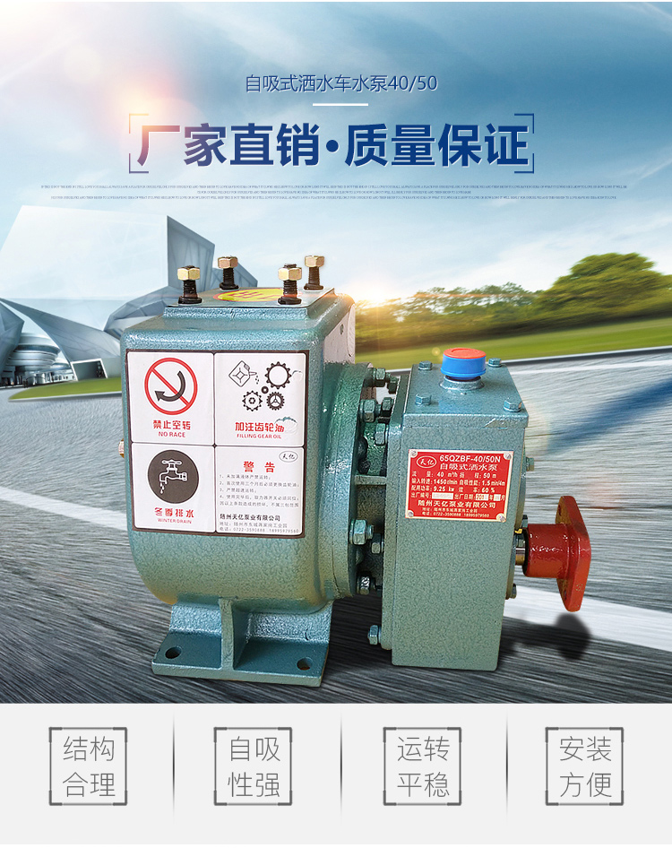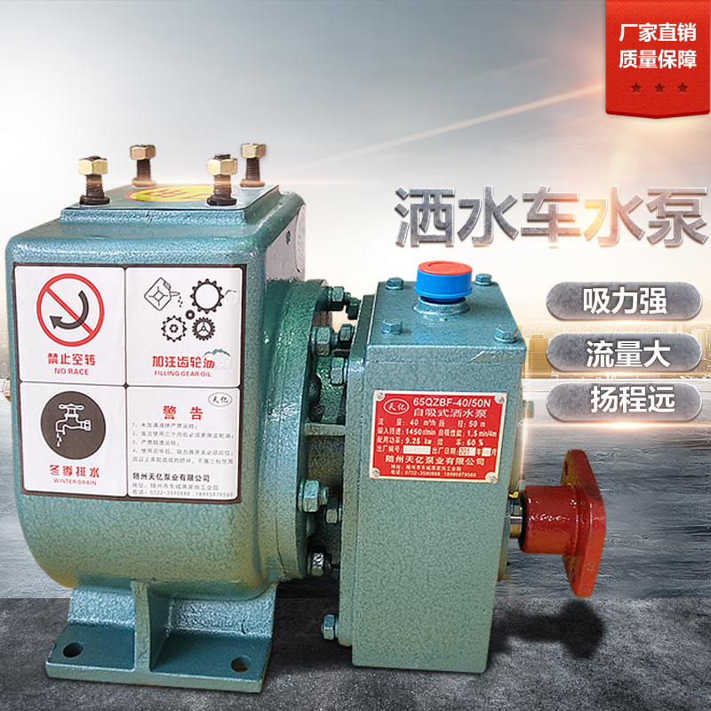 1、水泵性能分析比較 水泵的性能參數主要包括流量、揚程、輸入軸轉速、軸功率、自吸高度、自吸時間等,其選用依據主要以滿足灑水車的各項工作性能為目的。各廠家具體選用標準不一。