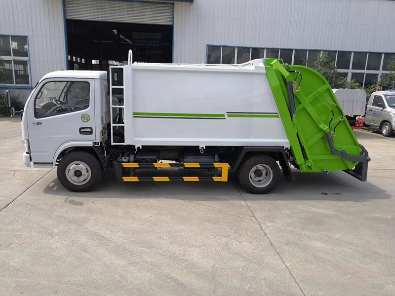 東風小多利卡側裝壓縮式垃圾車:單排可翻轉駕駛室側裝壓縮掛桶對接式垃圾車,3300軸距,東風輕型發(fā)動機廠生產的D28D11-4DA發(fā)動機(仿五十鈴技術)銘牌功率75(kw),193變截面車架,2噸前橋,4噸后橋,7.00R16鋼絲胎,12伏電池,無空調,有動力轉向,液壓制動。