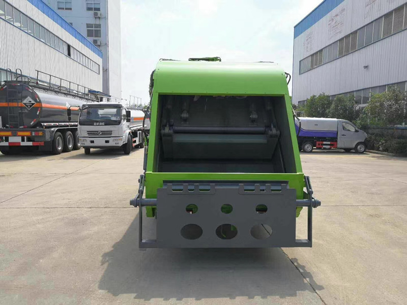 兩款壓縮垃圾車的卸載方式都是一樣的,都是通過壓縮廂內的推板推出達到卸載的目的。可將路邊垃圾桶內垃圾收集入垃圾廂內,通過后壓縮裝置將垃圾車壓縮成塊運輸,節(jié)省了垃圾容積,加快了效率,避免二次污染。