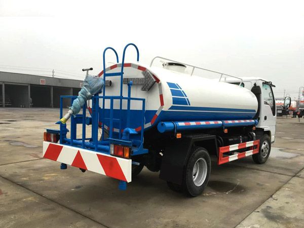灑水車前裝有鴨形噴嘴或圓頭沖嘴,后面裝有圓柱開灑水噴嘴或蓮蓬頭噴嘴,后部有一工作平臺,裝配有水炮。后部還可裝8個噴嘴(選裝)。