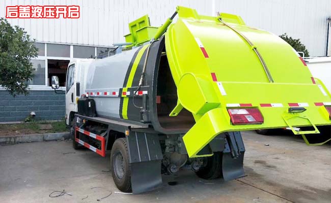 垃圾廂體容積4立方米,承載餐廚垃圾容積為園罐體,有效容積達到90%,罐體內分上、下兩層,下層為固液分離后污水收集箱,污水箱兩頭高,中間低,最低端設有出水口,以保證污水排放干凈,