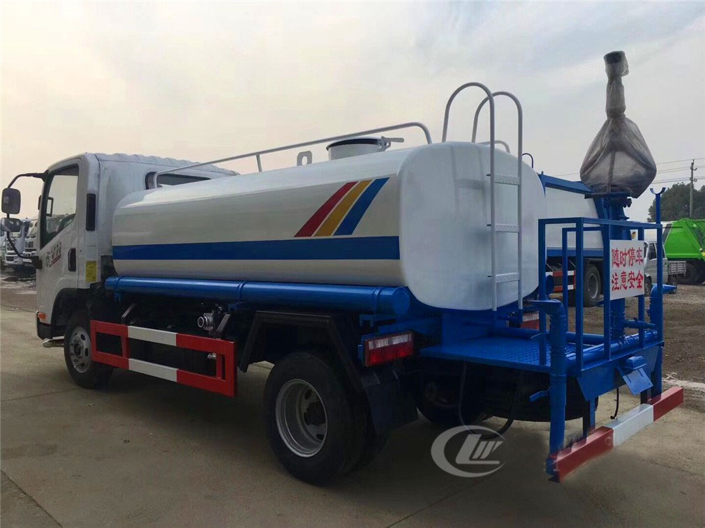 灑水車僅選用3900軸距底盤,有效容積:7.17立方米,2、當選裝普通后平臺時罐體尺寸(罐體長×長軸×短軸)對應關系為(mm):4300×1900×1270。當選裝噴霧機組后平臺時罐體尺寸(罐體長×長軸×短軸)對應關系為(mm):4000×1950×1330。3、側防護及后下部防護裝置均采用Q235B材質,均采用焊接連接, 后部防護斷面尺寸(mm):120×50,后部防護離地高度(mm):460。4、ABS生產廠家/型號:1.廣州瑞立科密汽車電子股份有限公司/CM4XL-4S/4M;2.浙江萬安科技股份有限公司/VIE ABS-II。5、專用裝置:罐體,主要用于園林綠化及灑水。