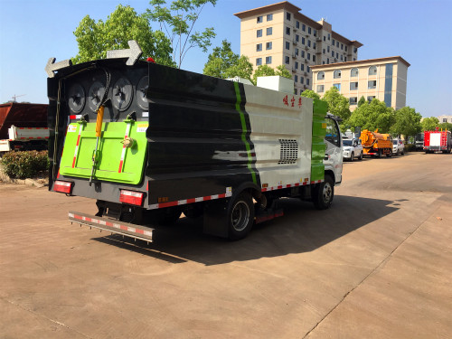 東風(fēng)5噸洗掃車主要由二類載貨汽車底盤、水箱、低壓前沖、中置吸嘴(內(nèi)置高壓噴水桿)、垃圾箱(集成水箱)、后噴霧等組成。具備: