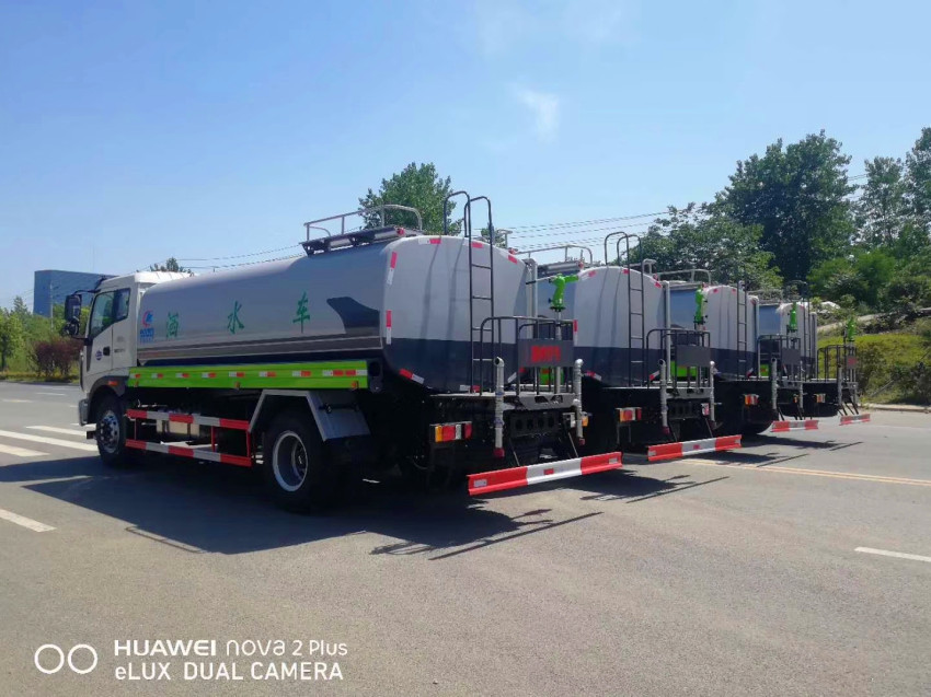 福田瑞沃12噸灑水車罐體采用機器壓板一次性成型技術,優質武鋼材質,配置大容量水箱,水罐采用有限元分析優化設計,儲水量更大,延長作業時間;配置獨立的高、低兩套水路系統,高低壓水泵選用國際知名品牌;采用自吸式級雙級離心泵,效率高,水源不方便時,可從河道、湖泊中吸水。全國獨有烤漆工藝,防腐除銹,多層底漆、面漆噴涂。 功能齊全,灌溉、噴灑、道路養護,噴霧降塵、高炮噴射等,采用優質水泵,合理設計水路管道,氣控取力器,作業能力強;加大罐體設計,可以裝作12方水,提高了車輛的使用效率。