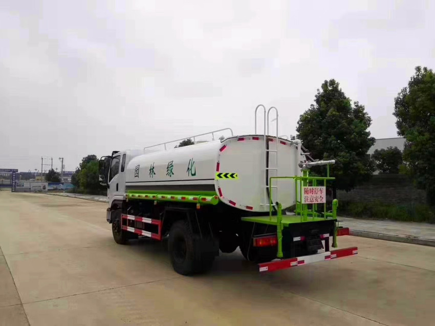 風專底D1國六12方灑水車國六12噸 罐體容積為12立方多功能灑水車,罐體鋼板為4mm碳鋼Q235材質,罐內隔板具有防波作用,以減輕汽車行駛時罐體液體沖擊,罐體及整車外形尺寸按照公告。帶大功率專用灑水泵,泵可自吸自排,整車前沖、后灑、側噴、帶65消防接口,后平臺配TDM-50、TDM-60、TDM80型風送式霧炮機組;罐體前封頭配大功率柴油發電機組;遠程遙控系統控制;霧炮機自動旋轉角度0-360°。后平臺帶綠化灑水炮,灑水炮可全方位旋轉,可連續調成直沖狀、大雨、小雨、毛毛雨;前封頭帶水位計,后平臺主管路帶1寸澆花接口,后爬梯。帶兩根輸水管及陰陽端。