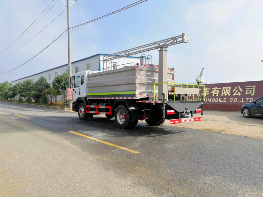 東風(fēng)多利卡3方灑水車(chē)車(chē)專用性能:前沖(噴)、后灑、帶側(cè)噴(花灑)、帶后工作平臺(tái)、平臺(tái)上安裝綠化灑水高炮(炮噴射形狀可調(diào)節(jié):直沖、大雨、中雨、毛毛雨、霧狀、可連續(xù)調(diào)節(jié),360°旋轉(zhuǎn)),配消防接口,自流閥,濾網(wǎng),帶自吸自排功能。(吸程≥8米 灑水寬度≥14-16米 射程≥28-30米)。可選配20米綠化噴藥卷盤(pán)。