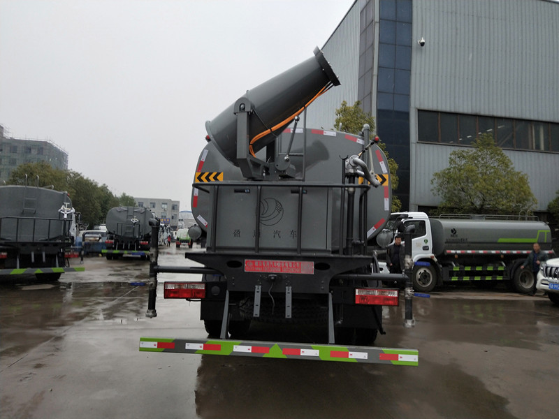 灑水車平臺安裝綠化高炮,射程25-30米左右,尾部帶綠化炮,帶自吸自排灑水泵,后工作平臺高壓水炮直沖射程25-30米(可調成:直沖狀、大雨、中雨、小雨、毛毛雨),整車帶消防接頭、自流閥。附送2根水管。
