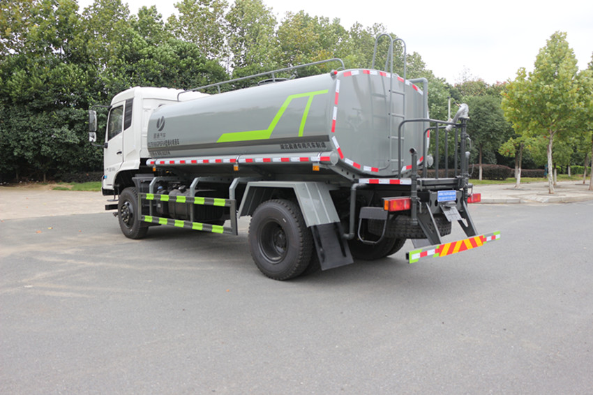 采用橢圓形或者方圓形結構的水罐,整車造型新穎、美觀大方,管道上有壓力表,方便操作人員隨時掌握泵的運轉情況。駕駛室和罐體中間有水位計,使水罐內的水量一目了然。罐體尾部有操作平臺,平臺有安全防護欄保障操作人員的安全,平臺上有爬梯方便操作人員上下車觀察罐體內的情況。