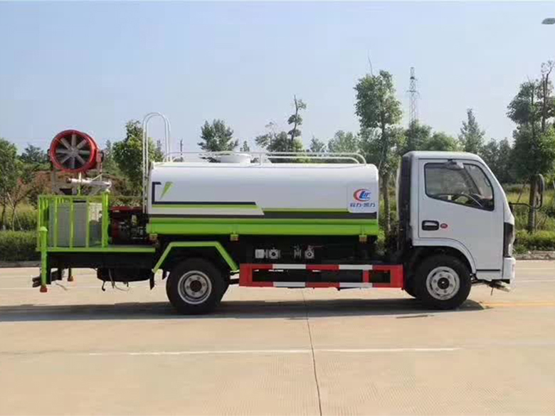 國六東風5噸灑水車專用功能為:前沖后灑,側噴,罐體后帶工作平臺加護欄,平臺上安裝綠化灑水高炮,射程28米左右,可調節多種形態(大雨、中雨、霧狀),配備大功率專用灑水泵,泵可吸自排,帶自流閥,帶消防接頭,帶過濾裝置,兩根吸水管。另外該車可選裝A、后部帶弧形噴霧和LED箭頭指示燈;B、后部帶LED箭頭指示燈;C、后部帶弧形噴霧裝置。