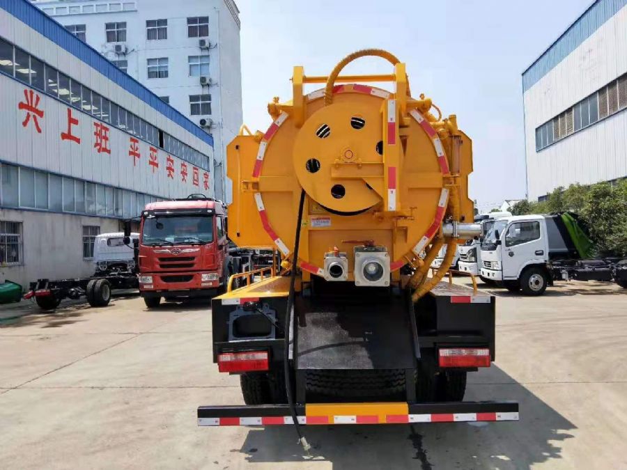 水罐1.8方,污罐4方,水罐采用4mm武鋼優(yōu)質(zhì)碳鋼制作,污罐采用5mm武鋼優(yōu)質(zhì)鋼板制作,配SK-6水循環(huán)泵/油真空泵(根據(jù)客戶需求選裝),170流量高壓泵,24兆帕壓力,真空防溢閥,真空壓力表,視污窗,水罐焊接在罐體兩側(cè)帶卷簾門,水污罐體可液壓舉升自卸,后開蓋可液壓開啟,配60米高壓軟管,10個大小不同高壓噴頭,8米吸污管,尾部100mm吸污口,100mm排污口(可根據(jù)客戶需求加大),帶免征,環(huán)保公告。