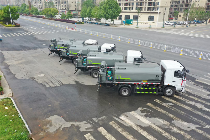 東風12噸灑水車-抑塵車-霧炮車,玉柴165匹馬力國六發動機 玉柴200匹馬力發動機 軸距3950,法士特8檔變速箱, 900R20鋼絲輪胎,電動玻璃, 中控鎖,ABS,原廠空調,多功能方向盤,氣囊座椅,罐體采用武鋼優質鋼材制作,專用功能為:前沖后灑,帶側噴, 罐體后帶工作平臺,平臺上安裝綠化灑水高炮,帶專用灑水車水泵,帶自流閥,帶消防接頭,平臺安裝30米霧炮, 配8千瓦柴油發電機,霧炮可以遙控此車為國六車型,發國六上戶手續,上戶免購置稅