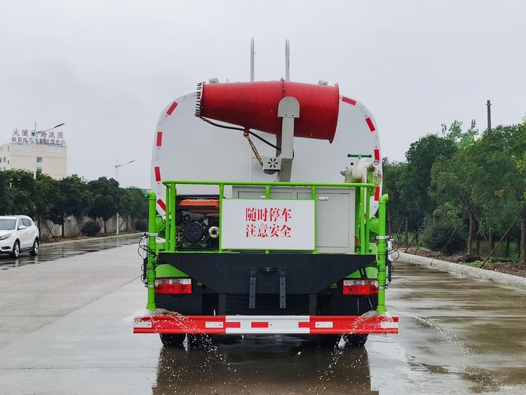 上裝標配:容積14.6立方,水泵型號:天億或龍王或億豐60-90泵,前沖、后灑、側噴、中聯軸承高炮,平臺樣式:鍍鋅沖孔平臺、加粗管道,80濾網三通,304不銹鋼大通徑球閥,消防出口(消防球閥),2根吸水管,其他標配,可選裝霧炮平臺。
