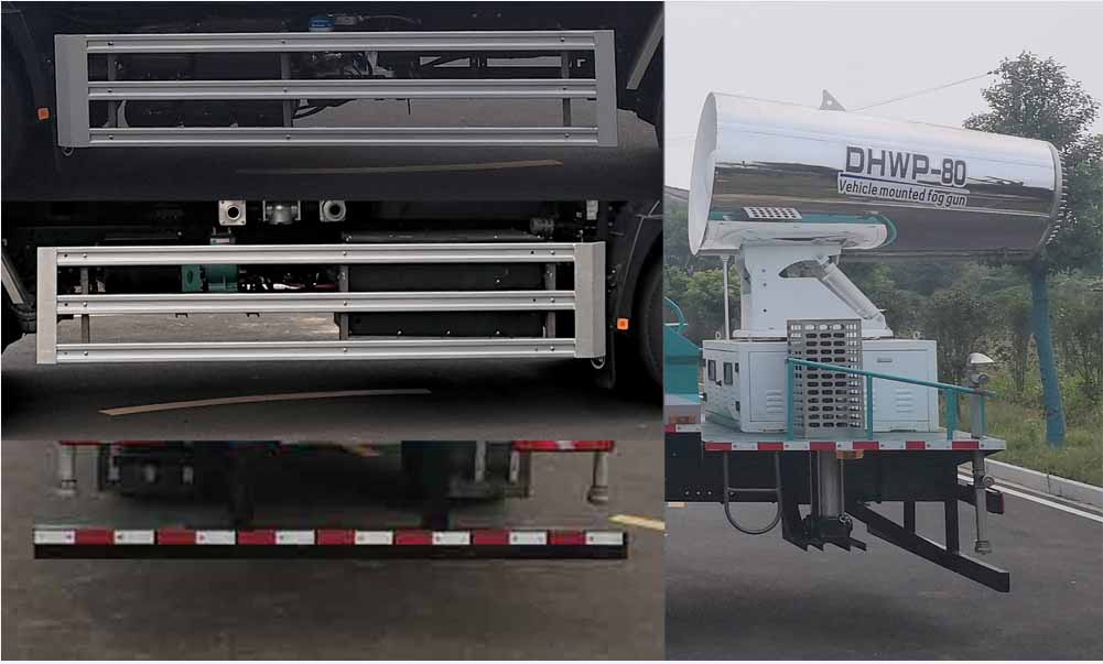霧炮車專用配置: 配備全國評比質量第一的(日本技術)大功率專用灑水泵、取力器、球閥、濾網、輸水管道、灑水裝置等部件組成。水泵、取力器、球閥、濾網均為國家標準產品,具有性能優良,工作可靠、效率高、流量大、維修方便等特點。