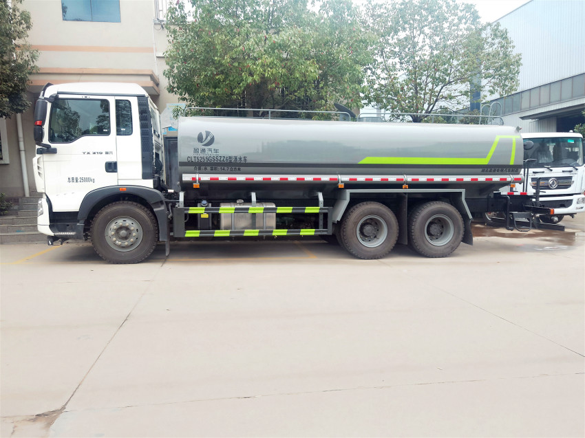 重汽20噸灑水車罐體為橢圓形或方形,采用武鋼優質碳鋼板制成,罐體倉內1.5米一道隔板,具有防波防蕩作用,還可按用戶要求進行專業的防腐防銹處理,罐體外可用發泡或巖棉加裝保溫層起保溫功能。可選裝藥盤,藥泵、高壓噴藥設備、非車帶泵動力等.、罐內防腐防銹、多方位進出水接頭、氣動閥、警燈等先進設施,以滿足不同用戶需求。