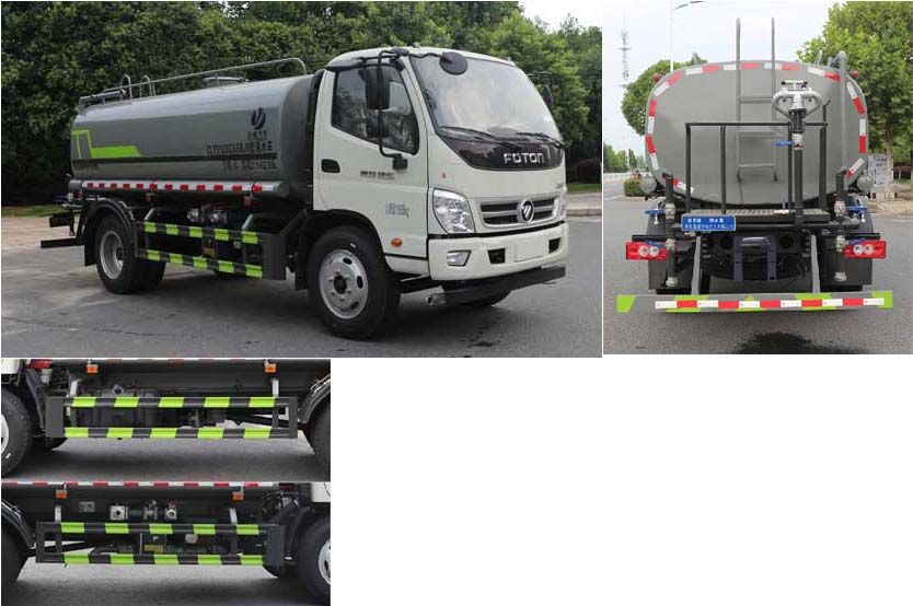 福田10噸灑水車配置: 發動機云內 150 馬力,軸距 3800,萬里揚 6 檔,8.25R20 鋼絲 胎,T-BOX 全國通用,斷氣剎,ABS,原廠空調,電動門窗,中控鎖