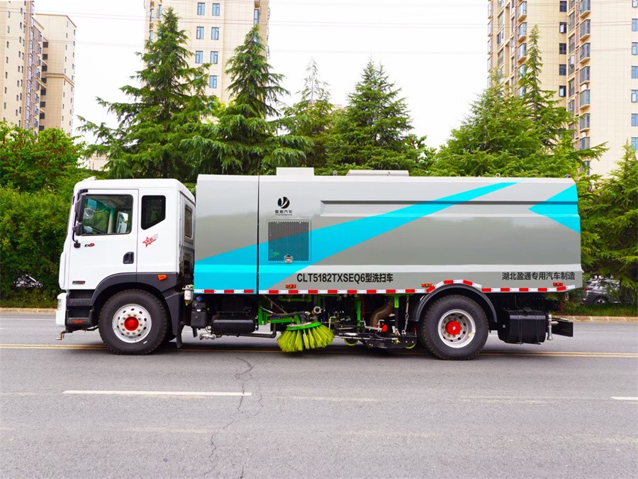 上裝配置方面,有中置4掃盤、后置吸盤、三洋馬達、江鈴五十鈴副發動機、施耐德控制開關、海普瑞思電磁閥組、無極變速自動離合器、免離心式風機、不銹鋼垃圾箱、北極星電子水泵、垃圾箱舉升自卸、尾部LED箭頭燈、手動泵應急等。