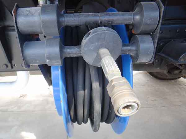 21)、側后部裝有機械式自動卷繞沖洗卷盤,配20m高壓軟管和不同角度的清洗槍,可用于清洗車身和其它設備和設施。