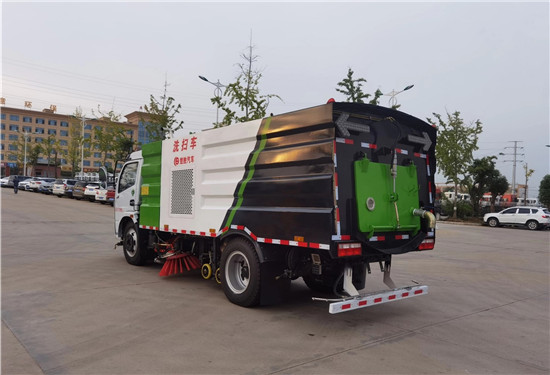 洗掃車改裝部分具有路面清洗、路面清掃、路緣清洗、路緣和路緣石立面洗刷、低壓沖洗、噴霧除塵等多功能;選擇“全洗掃”模式清洗廣場(chǎng)和路面,清洗效率高效果好,洗凈率達(dá)90%以上,選擇“左洗掃”或“右洗掃”模式清洗路面和路緣、洗刷路緣石立面;需要進(jìn)行路面清掃或路面保潔作業(yè)時(shí),可選擇掃路模式;需要噴霧除塵時(shí),可開(kāi)啟噴霧裝置,進(jìn)行噴霧除塵作業(yè);還可以像灑水車一樣對(duì)路面進(jìn)行低壓沖洗作業(yè)。