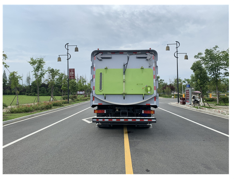 1. 采用吸掃結(jié)合的方式收集垃圾,濕式除塵、電液控制,液壓傾翻卸料的作業(yè)方式對路面進(jìn)行清掃作業(yè)。