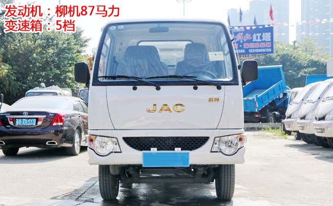 江淮康鈴X1掛桶式垃圾車,柳汽87馬力,5檔變速箱,1.4T后橋,2400軸距,175R14LT(后單胎),帶暖風(fēng)、空調(diào)、可調(diào)方向盤、電預(yù)熱、電熄火、不翻轉(zhuǎn)、金屬漆。