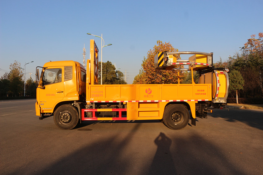 該車(chē)專用裝置為:車(chē)載式緩撞裝置,主要用于移動(dòng)施工、臨時(shí)性封閉車(chē)道或交通事故處理及搶險(xiǎn)現(xiàn)場(chǎng), 降低城市道路施工、高速公路養(yǎng)護(hù)等作業(yè)中的安全問(wèn)題;后伸800mm;ABS型號(hào)/生產(chǎn)廠家: 3631010-C2000/東科克諾爾商用車(chē)制動(dòng)系統(tǒng)(十堰)有限公司,ABS 8/東科克諾爾商用車(chē)制動(dòng)系統(tǒng)(十堰)有限公司, 4460046450/威伯科汽車(chē)控制系統(tǒng)(中國(guó))有限公司;側(cè)防護(hù)材料為:Q235碳鋼,連接方式為:焊接連接, 后部防護(hù)為專用裝置代替,后部防護(hù)離地高度(mm):380。隨底盤(pán)選裝駕駛室. |