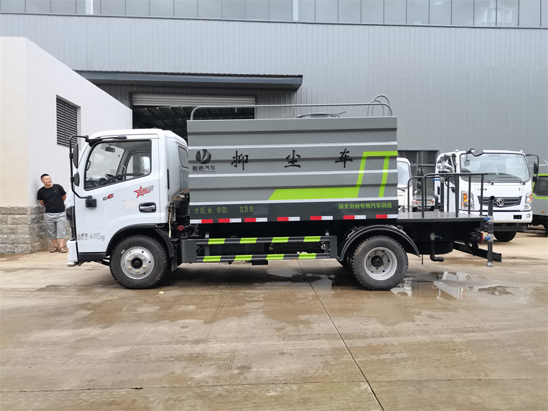 藍牌灑水車產品簡述:縱昂牌 CLT5042TDYEQ6 型多功能抑塵車標配前噴(鴨嘴)、后對 沖、后灑、側噴、后置式工作平臺,平臺上配置綠化水炮(可 360 °旋轉,既可 以調成柱狀,也可以調成霧狀),配備優質大功率專用灑水泵(可自吸自排, 可從河里或池塘抽水到罐體),取力器,雜物過濾網,消防接口,自流球閥系統、 取力器、球閥、濾網均為國家標準產品,主管道加粗,法蘭墊、法蘭盤加厚,