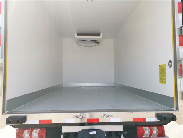 采用斷橋隔熱工藝,整體框架結(jié)構(gòu)制作,廂體內(nèi)、外壁材料為玻璃鋼板,采用高密度保溫層,廂板內(nèi)帶有骨架,廂體厚度80mm,門框,門飾件、包角全部使用不銹鋼材質(zhì)。最新款鋁合金包邊型材,廂體內(nèi)采用LED照明燈及廂體示寬燈;門框密封條為橡膠材質(zhì),后門梁帶加厚防撞塊,加厚型不銹鋼鉸鏈及鎖件。車體副梁采用510L高強(qiáng)度鋼制作,底板為塑鋼花紋板,車廂后門帶一個(gè)上車扶手,其余標(biāo)配;