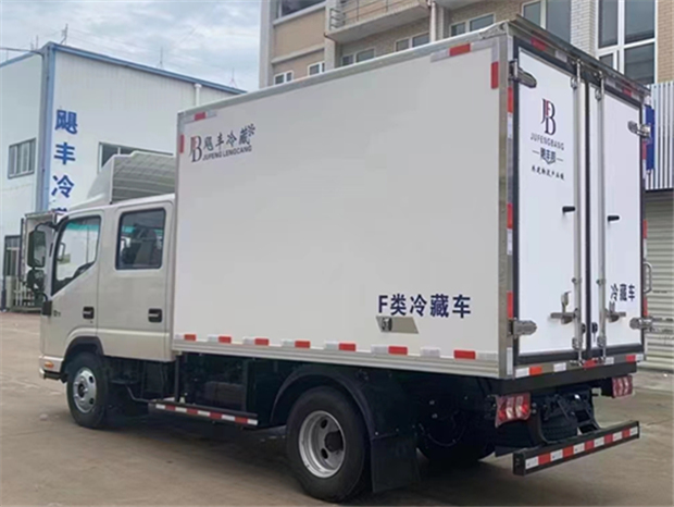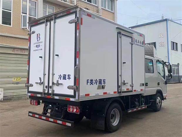 江淮帥鈴雙排座藍(lán)牌冷藏車廂體配置為:采用斷橋隔熱工藝,整體框架結(jié)構(gòu)制作,廂體內(nèi)、外壁材料為玻璃鋼板,采用高密度保溫層,廂板內(nèi)帶有骨架,廂體厚度80mm,門框,門飾件、包角全部使用不銹鋼材質(zhì)。最新款鋁合金包邊型材,廂體內(nèi)采用LED照明燈及廂體示寬燈;門框密封條為橡膠材質(zhì),后門梁帶加厚防撞塊,加厚型不銹鋼鉸鏈及鎖件。車體副梁采用510L高強度鋼制作,底板為鋁花紋板,車廂后門帶一個上車扶手,其余標(biāo)配;