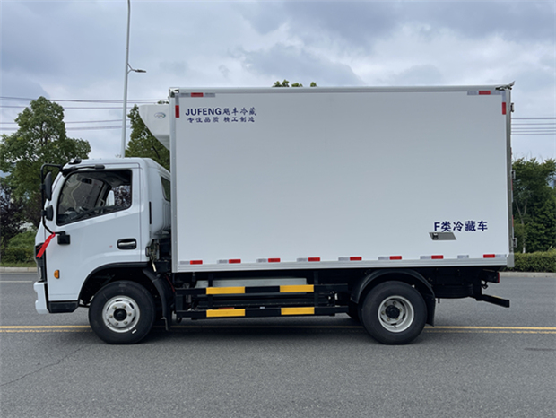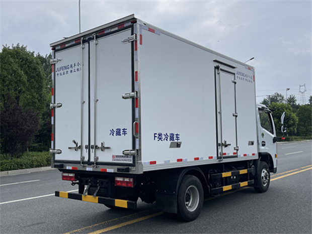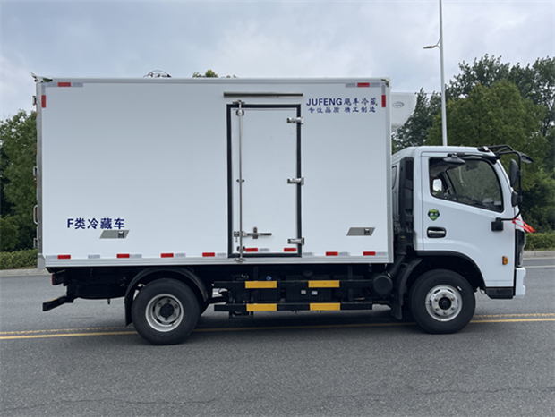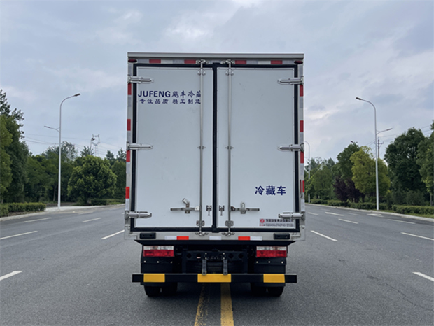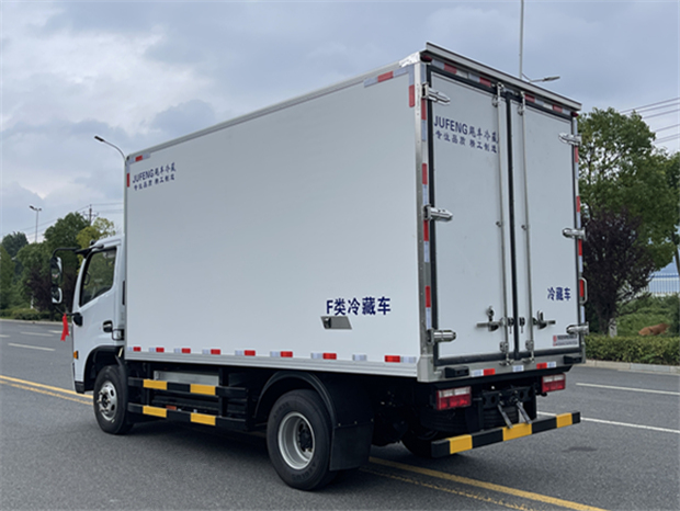 東風新能源冷藏車廂體配置為:采用斷橋隔熱工藝,整體框架結構制作,廂體內、外壁材料為玻璃鋼板,采用高密度保溫層,廂板內帶有骨架,廂體厚度80mm,門框,門飾件、包角全部使用不銹鋼材質。最新款鋁合金包邊型材,廂體內采用LED照明燈及廂體示寬燈;門框密封條為橡膠材質,后門梁帶加厚防撞塊,加厚型不銹鋼鉸鏈及鎖件。車體副梁采用510L高強度鋼制作,底板為鋁花紋板,車廂后門帶一個上車扶手,其余標配;