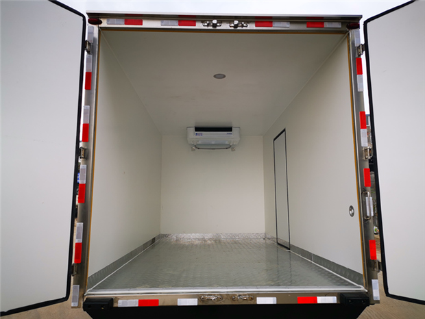 福田奧鈴3米7冷藏車(chē)廂體配置為:采用斷橋隔熱工藝,整體框架結(jié)構(gòu)制作,廂體內(nèi)、外壁材料為玻璃鋼板,采用高密度保溫層,廂板內(nèi)帶有骨架,廂體厚度80mm,門(mén)框,門(mén)飾件、包角全部使用不銹鋼材質(zhì)。最新款鋁合金包邊型材,廂體內(nèi)采用LED照明燈及廂體示寬燈;門(mén)框密封條為橡膠材質(zhì),后門(mén)梁帶加厚防撞塊,加厚型不銹鋼鉸鏈及鎖件。車(chē)體副梁采用510L高強(qiáng)度鋼制作,底板為鋁花紋板,車(chē)廂后門(mén)帶一個(gè)上車(chē)扶手,其余標(biāo)配;
