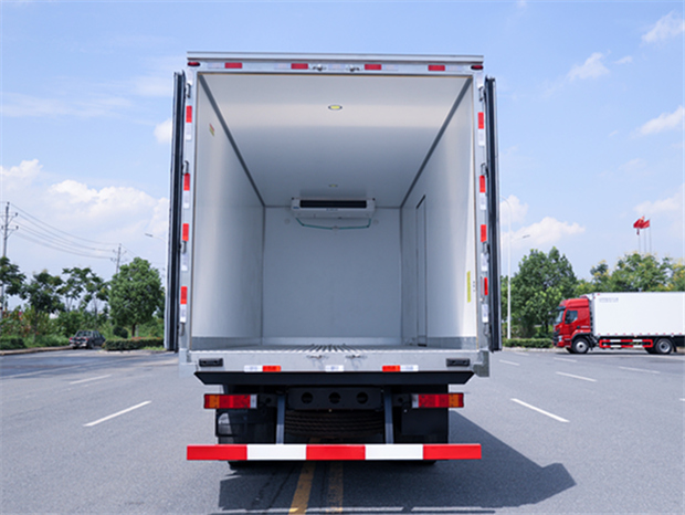 東風天錦6米8冷藏車冷機配置:可選安裝颶豐,凱利,凱雪,冷王,開利等冷藏機組,最低溫度可達-18度。車廂內溫度可根據需求自由調節;溫度控制器安裝在駕駛室內,方便操作控制。選裝配置:通風槽,肉鉤導軌,卡槽等。