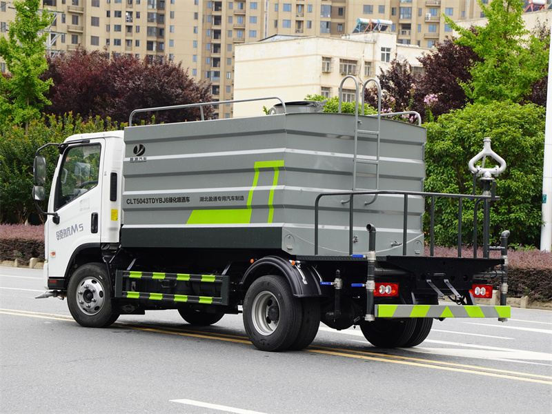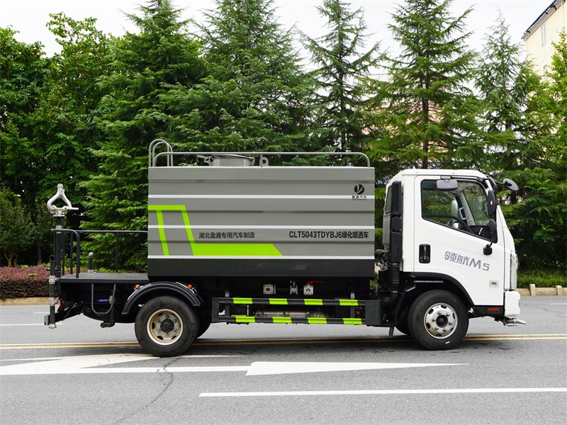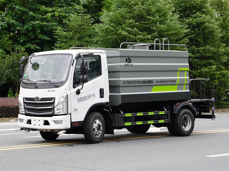 福田M5路面養護標配前噴(鴨嘴)、后沖、后灑、側噴、后置式工作平臺,平臺上配置綠化水炮(可 360°旋轉,既可以調成柱狀,也可以調成霧狀,更可以調成直沖狀、大雨、中雨、小雨、毛毛雨),配備優質大功率專用灑水泵(可自吸自排,可從河里或池塘抽水到罐體),取力器,雜物過濾網,消防接口,自流球閥系統、取力器、球閥、濾網均為國家標準產品,主管道加粗,法蘭墊、法蘭盤加厚,大通徑球閥。整體具備性能優良安全可靠、效率高、流量大、維修方便等特點。