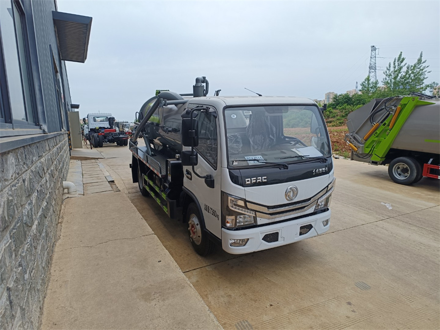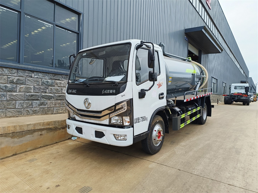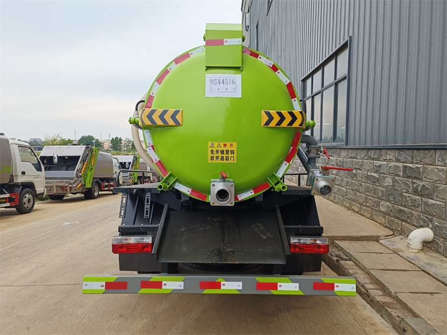 東風多利卡5方吸污車上裝配置:吸污部分:配 SK-6 或 SK-9 水循環泵,一根 8 米吸污管(帶快速接頭),工具 箱;細節部分:污罐體采用 6mm 優質碳鋼板制作,安裝洗手 裝置,防溢閥(帶過濾網),加粗型污水觀察管;尾部 1 個 150 球 閥,1 個 100 球閥,均帶出口,球閥向下傾斜,后封頭加固,后蓋可液 壓開啟,配手動鎖緊裝置。