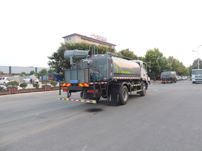 標(biāo)準(zhǔn)配置灑水車主要裝備有:前沖(沖洗公路路面)、后灑(公路路面養(yǎng)護(hù))、側(cè)噴、高位側(cè)花灑(路邊綠化帶優(yōu)化);后工作平臺(tái)高壓水炮,可調(diào)節(jié)成柱狀,射程≥28m;也可調(diào)節(jié)成霧狀,射程≥30米,水泵自吸高度:≤7m,灑水寬度:≥15m。側(cè)防護(hù)網(wǎng),自流閥,消防接頭。灑水車水泵為常壓水泵,功能可以抽水、排水。另外根據(jù)用戶要求,可加消防泵、噴霧機(jī)、農(nóng)藥卷盤、農(nóng)藥柱塞泵。罐內(nèi)可以做防腐防銹、電磁閥氣動(dòng)閥自動(dòng)放水等****,以滿足不同用戶需求。