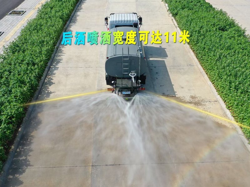 東風天錦4驅灑水車專用功能配置:罐體實際容積約為11立方米,(罐體有效參數9立方米、額定載質量8575kg、)采用武鋼優質碳鋼板卷壓成型。配備專用灑水泵,自吸自排,前噴后灑、側噴、后工作平臺及灑水高壓炮。灑水泵自吸高度為6米左右,整車灑水寬度14米左右,后工作平臺水炮可調成:直沖狀、大雨、中雨、小雨、毛毛雨,有效射程≥28米,整車帶接頭、水位計,自流閥。后工作平臺主管路帶1寸澆花接口,附送2根3米水管,1個爬梯,兩側及后保險杠。 |