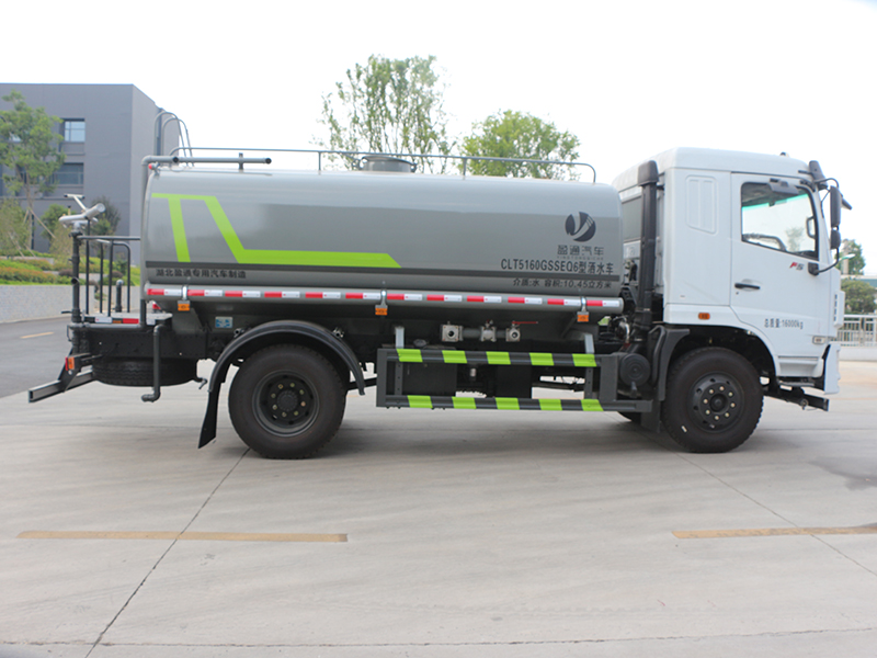 標(biāo)準(zhǔn)配置灑水車主要裝備有:前沖(沖洗公路路面)、后灑(公路路面養(yǎng)護(hù))、側(cè)噴、高位側(cè)花灑(路邊綠化帶優(yōu)化);后工作平臺(tái)高壓水炮,可調(diào)節(jié)成柱狀,射程≥28m;也可調(diào)節(jié)成霧狀,射程≥30米,水泵自吸高度:≤7m,灑水寬度:≥15m。側(cè)防護(hù)網(wǎng),自流閥,消防接頭。灑水車水泵為常壓水泵,功能可以抽水、排水。另外根據(jù)用戶要求,可加消防泵、噴霧機(jī)、農(nóng)藥卷盤、農(nóng)藥柱塞泵。罐內(nèi)可以做防腐防銹、電磁閥氣動(dòng)閥自動(dòng)放水等****,以滿足不同用戶需求。