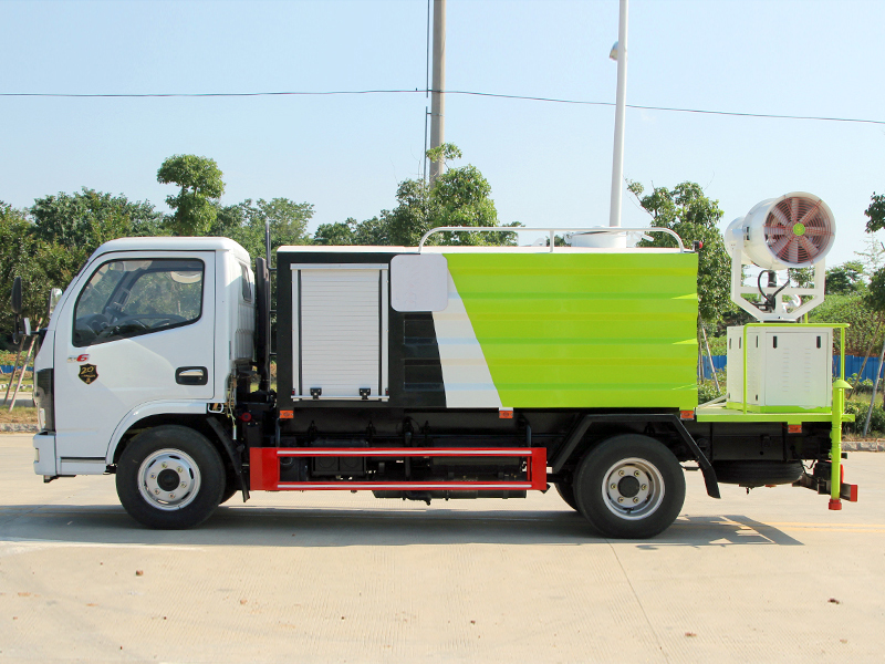 霧炮灑水車上裝配置:罐體采用Q235優質碳鋼板制作,可選用30米柴油霧炮機,罐體采用機器壓板一次性成形技術,采用先進旋邊機,罐體包罐機工藝保證了罐體制作的精度和美觀。罐體厚度4mm,方形罐體,容積達到5立方(5噸),全國獨有烤漆工藝,多層底漆,防腐除銹,面漆噴涂。功能齊全,具備前沖、后灑、高炮、側噴,綠化高炮,采用優質水泵,合理設計水路管道,氣控取力器,作業能力強,采用大功率柴油霧炮機,噴灑距離30米射程,用途范圍廣。