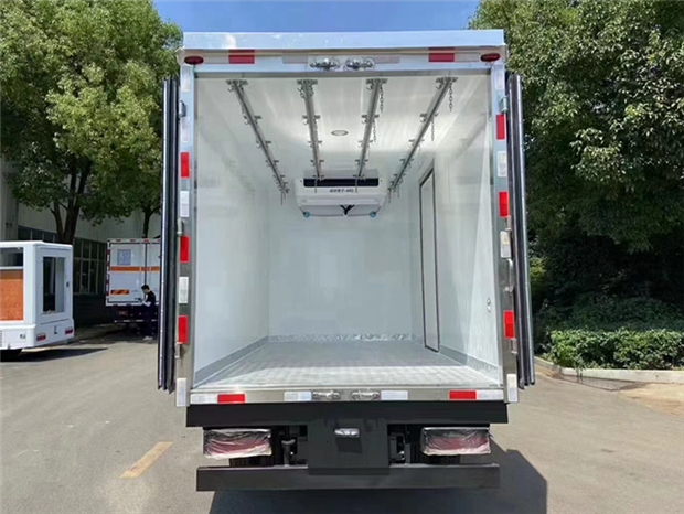大運3米6冷藏車車廂配置:廂體采用內外優質玻璃鋼板夾保溫層制成,廂體厚度80mm,鋁合金型材包邊,鎖件為不銹鋼,地板為鋁花紋板,不銹鋼門框,鎖件,新型鋁合金型材包邊,不銹鋼包角。