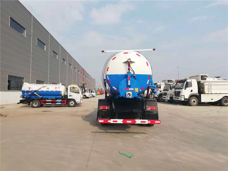 由于吸糞膠管始終浸沒于液面上,糞罐內的空氣被抽吸后,因其得不到補充而越來越稀薄,致使罐內壓力低于大氣壓力,糞液即在大氣壓力使用下,經吸糞膠管進入容罐。或者由于虹吸管接近罐底,空氣被不斷排入糞罐時,因其沒有出路而被壓縮,致使罐內壓力高于大氣壓力,糞液即在壓縮空氣的作用下,經虹吸管,吸糞膠管排出罐外。吸污車具有抽吸效率高、自吸、自排及直灌等特點。抽滿糞罐時間:≤5min,吸程:≥8m。據有使用壽命長,工作速度快,操作簡便,運輸方便等特點。吸污車:吸污車(Suction sewage truck)是收集、中轉清理運輸污泥、化糞池糞便、污水,避免二次污染的新型環衛車輛,吸污車可自吸自排,工作速度快,容量大,運輸方便,適用于收集運輸糞便、泥漿、污水等液體物質。吸污車采用國內技術的吸污車真空泵,吸力大,吸程遠,特別適合用于下水道內的淤積物的抽吸、裝運和排卸,尤其是可以吸下水道泥漿、淤泥、石子、磚塊等較大物體,主要由取力器、傳動軸、油水分離器、專用真空吸污泵,容積壓力表、吸物導管、自流閥、真空罐體、連通器(視糞窗)、全自動防溢閥、壓力罐體、管網系統、真空壓力表、液壓自卸裝置、洗手裝置等組成