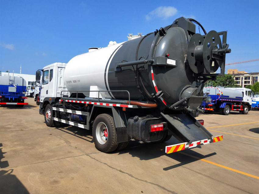 吸污車采用國內(nèi)技術領先的吸污專用泵,吸力大,吸程遠,特別適合用于下水道內(nèi)的淤積物的抽吸、裝運和排卸,尤其是可吸下水道泥漿、淤泥、石子、磚塊等較大物體、含水量較小等物質(zhì)。抽滿污(糞)罐體時間:≤5min,吸程:≥10m。自吸自排,壽命長,工作速度快,運輸方便。吸污車的排放有加壓排放和自流排放兩種方式,吸污車自吸自排,后蓋可打開并自卸罐體中雜質(zhì),抽吸效率高、自吸、自排及直灌等特點,操作快速、簡便 。適宜于大、中、小城鎮(zhèn)環(huán)衛(wèi)、市政部門使用。 配德國進口18兆帕的高壓清洗水泵 ,可以對下水道搜通