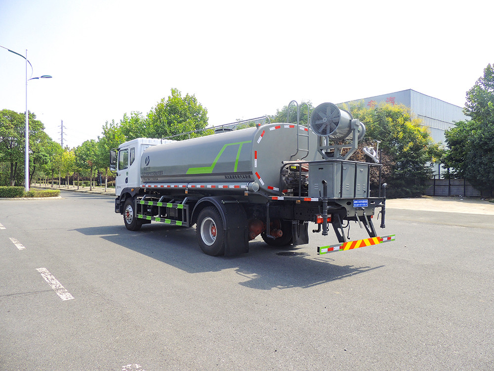 東風D9 -16方抑塵車產品簡述 抑塵車又稱為綠化噴灑車、多功能灑水車、園林綠化灑水車。抑 塵車適合于各種路面沖洗,樹木、綠化帶、草坪綠化,道路、廠礦企業 施工建設,高空建筑沖洗。抑塵也可以作為運水車使用,最常見的車 型有綠化噴灑車、多功能灑水車、綠化灑水車幾大類。 我公司產品標配前噴(鴨嘴)、后沖、后灑、側噴、后置式工作 平臺,平臺上配置綠化水炮(可 360°旋轉,既可以調成柱狀,也可 以調成霧狀,更可以調成直沖狀、大雨、中雨、小雨、毛毛雨),配 備優質大功率專用灑水泵(可自吸自排,可從河里或池塘抽水到罐體), 取力器,雜物過濾網,消防接口,自流球閥系統、取力器、球閥、濾網 均為國家標準產品,主管道加粗,法蘭墊、法蘭盤加厚,大通徑球閥。 整體具備性能優良安全可靠、效率高、流量大、維修方便等特點。