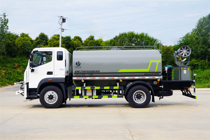 福田奧鈴12-15噸霧炮灑水車產品標配前噴(鴨嘴)、后沖、后灑、側噴、后置式工作 平臺,平臺上配置綠化水炮(可 360°旋轉,既可以調成柱狀,也可 以調成霧狀,更可以調成直沖狀、大雨、中雨、小雨、毛毛雨),配 備優質大功率專用灑水泵(可自吸自排,可從河里或池塘抽水到罐體), 取力器,雜物過濾網,消防接口,自流球閥系統、取力器、球閥、濾網 均為國家標準產品,主管道加粗,法蘭墊、法蘭盤加厚,大通徑球閥。 整體具備性能優良安全可靠、效率高、流量大、維修方便等特點